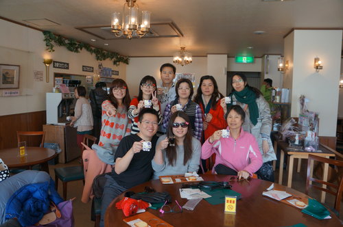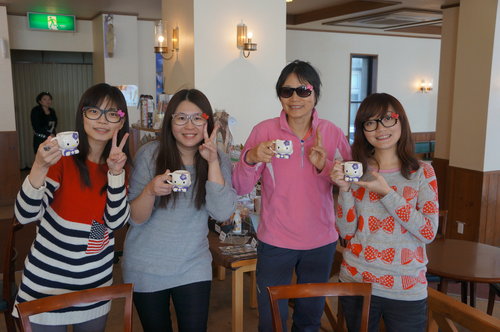 導遊先帶著大家前往喝咖啡拿kitty杯