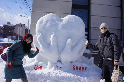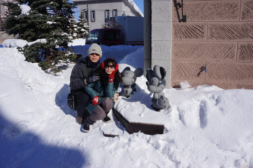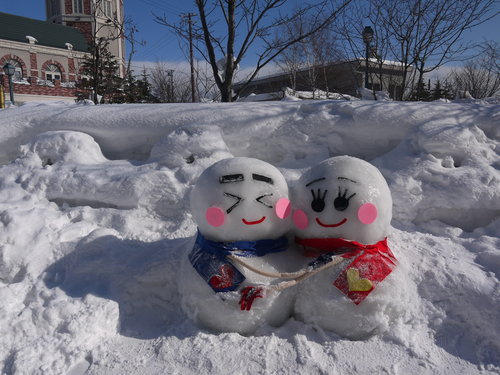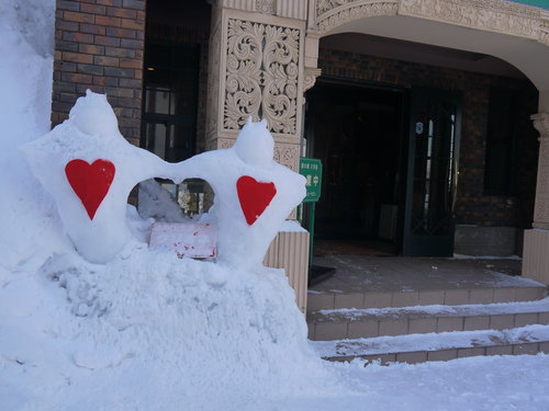 在小樽音樂盒堂外也有一些用雪堆出來的造型