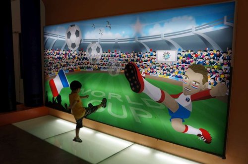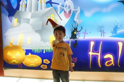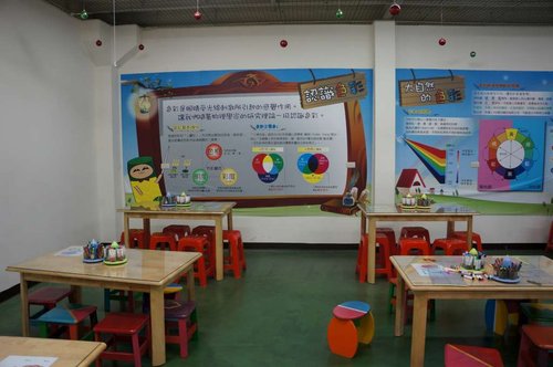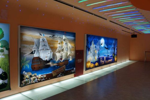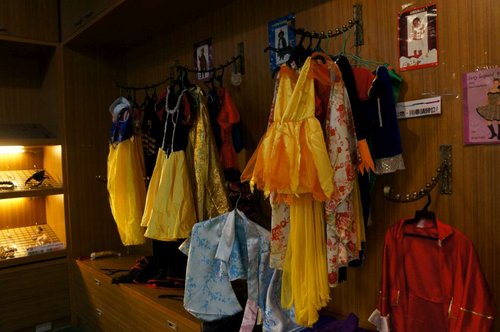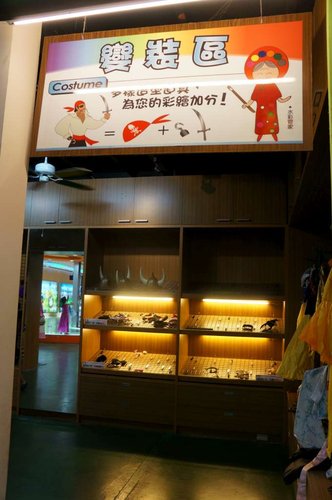 小朋友彩繪完後可以在這變裝在前方舞台上拍照