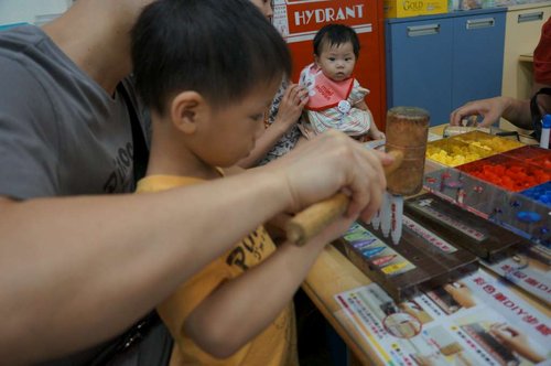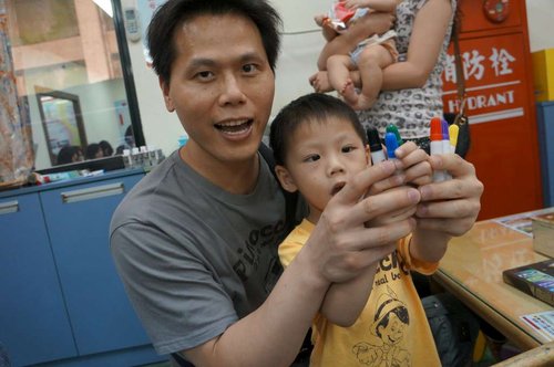 比比玩的很開心...又有蜡筆,彩色筆可以帶回家