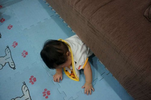 結果比爸就說咪咕自己一直移動就移到沙發底下