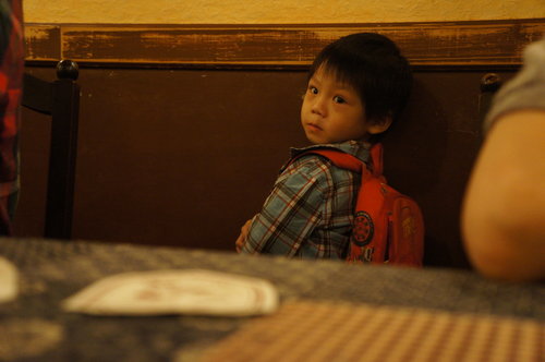 很難好好地站著我給我拍照..真是一個很難控制的小孩