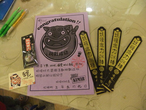 有手機吊飾,獎狀一枚,妖怪念力OK棒(寫心願),還有米豆的免費人物漫畫