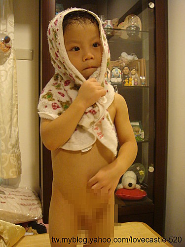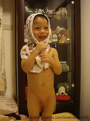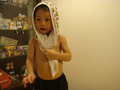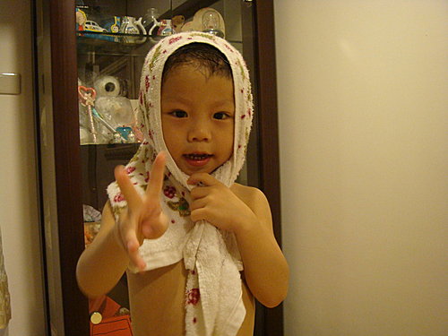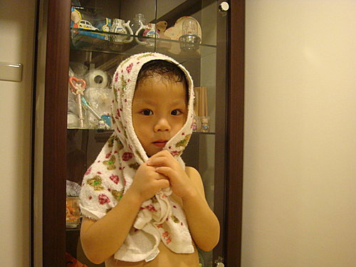 每次洗完澡..我都會幫比比在頭上包條毛巾