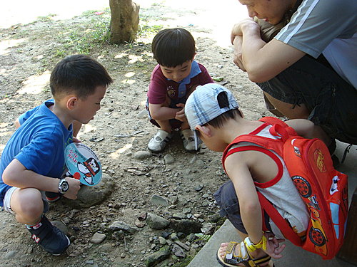 這四位很認真地在看螞蟻搬家