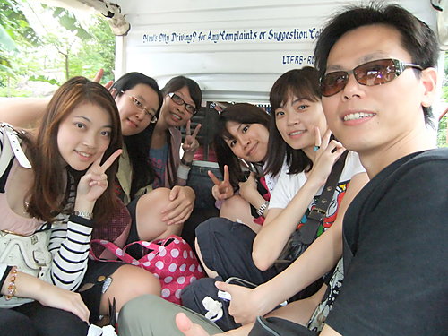 我們是坐大台遊覽車..前頭是某公司的員工旅遊..我們只是併在裡頭借坐一下
