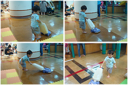 所以比比一拿到吸塵器就整個很認真把場地吸一遍