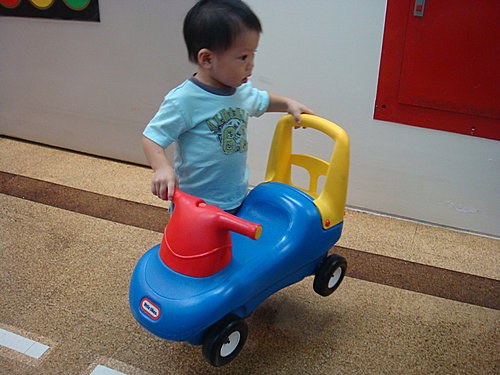 有小朋友的地方他都衝第一...真怕別人不跟他玩