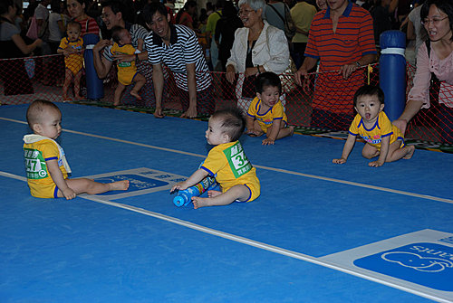 一個小朋友爬行比賽可能就有四個以上的人陪同
