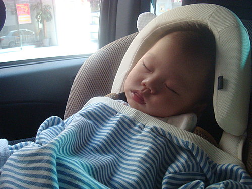 比賽完後坐上車馬上就睡著了