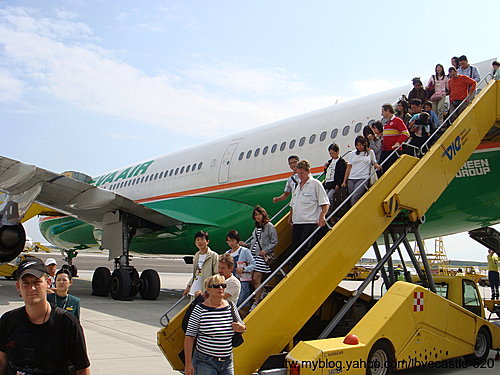到了維也維機場後,很特別的是我們從後座艙下機