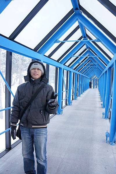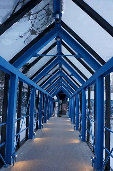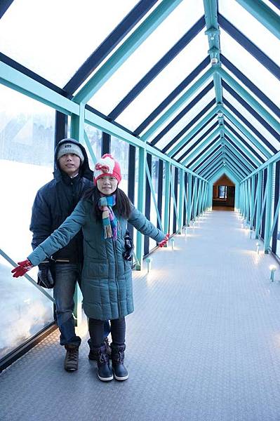 在這通道上的玻璃上看到雪的樣子