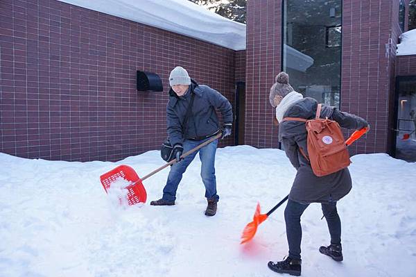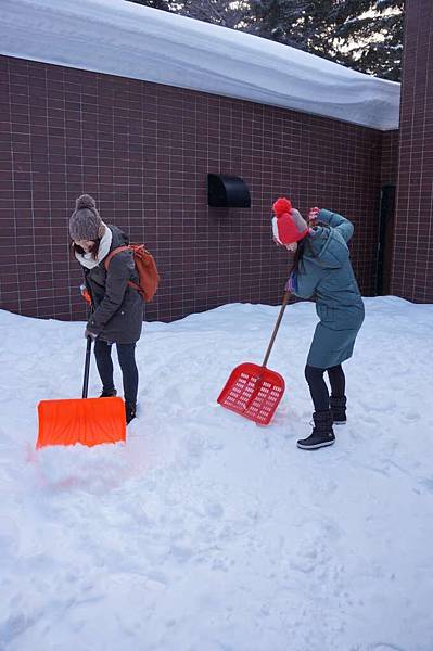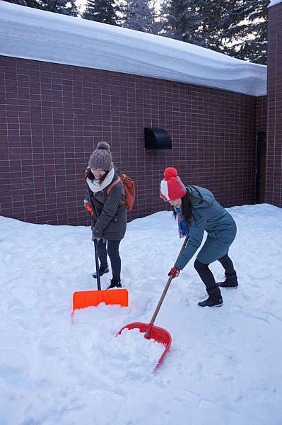 我們看到大門旁放了二支鏟雪的