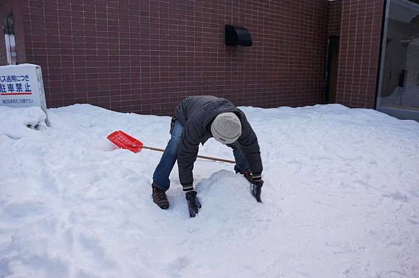 我們開始要來挖雪來做雪人