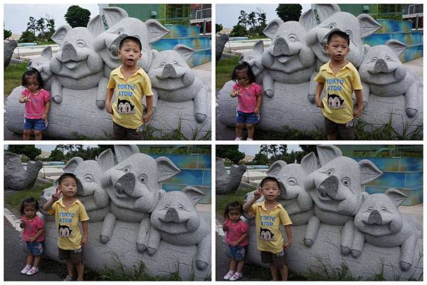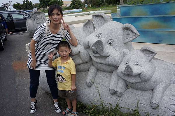 停好車走到玻璃廟前看到石子做的小豬..真可愛