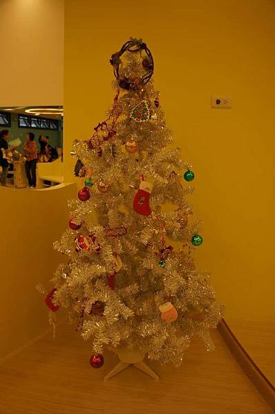 一旁有棵銀色聖誕樹