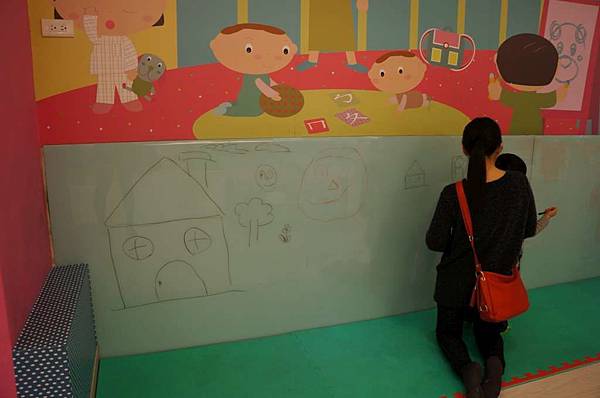 剛好有媽媽陪著小孩在畫圖