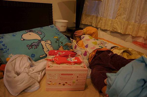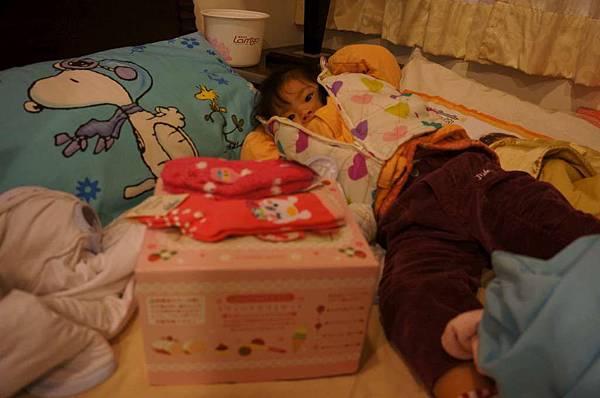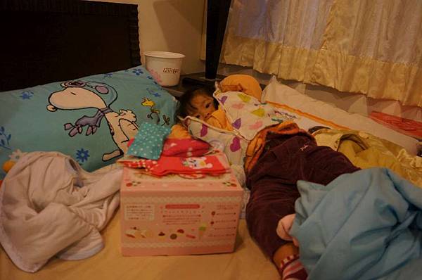 後頭的妹妹一直說她還想再睡啦!