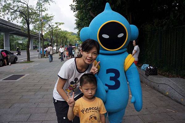 出了門口後剛好有ET布偶在宣傳他們的保險