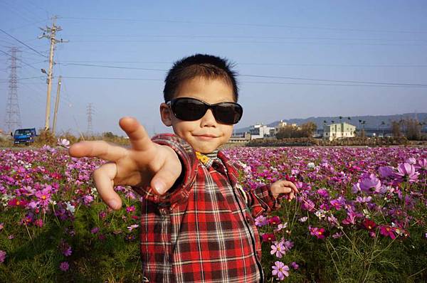 這是我們全家在花海中開心的大笑照