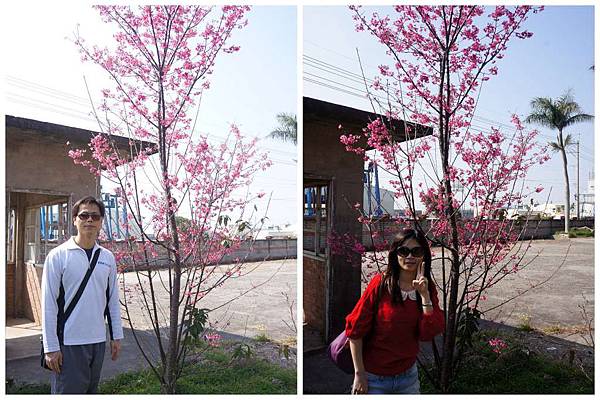 火車的後頭剛好有一棵櫻花