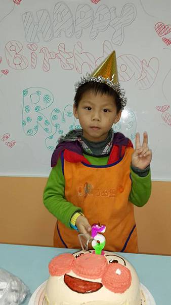 因為生日當天已訂好造型蛋糕送到比比學校一起和小朋友慶生