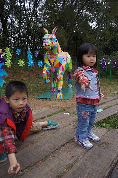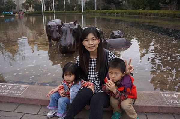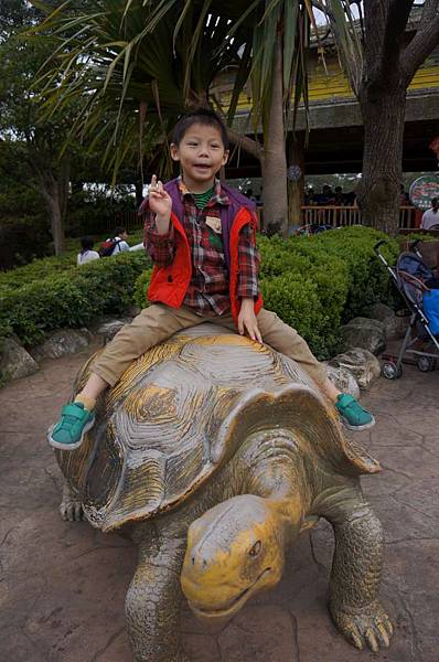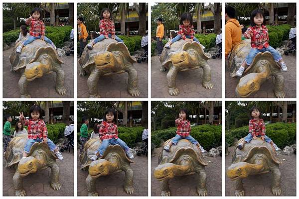 比比也長大了..看到烏龜就直接爬上去坐著拍照
