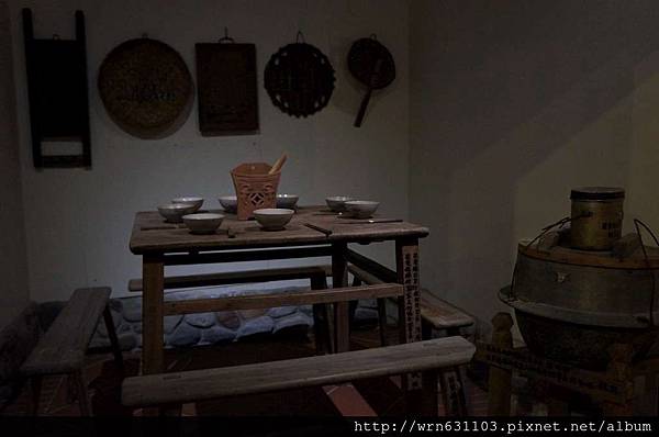 也擺放著以前客家人用餐的樣子