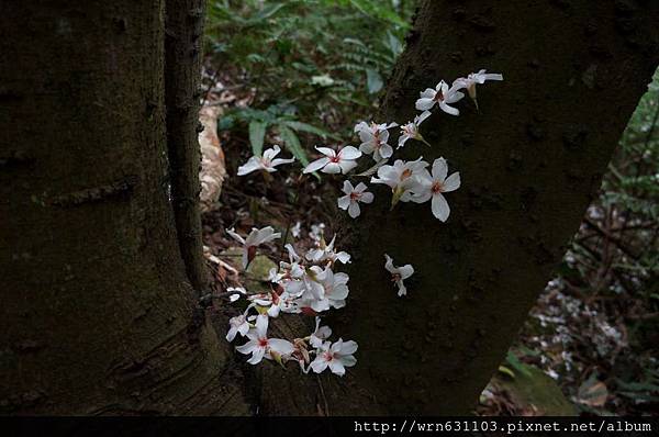 這油桐花剛好長在樹幹上