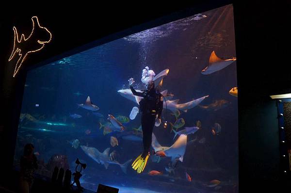我們先到探險島水族館看木洋池餵食秀