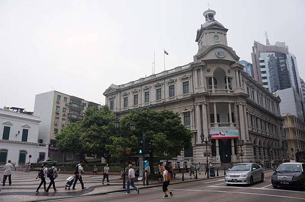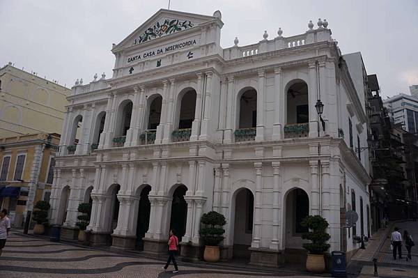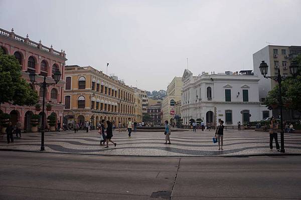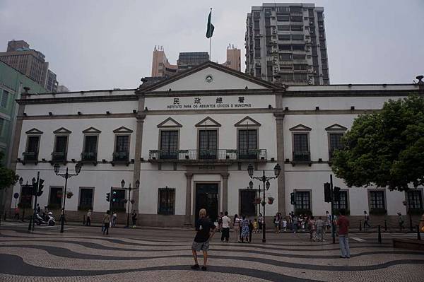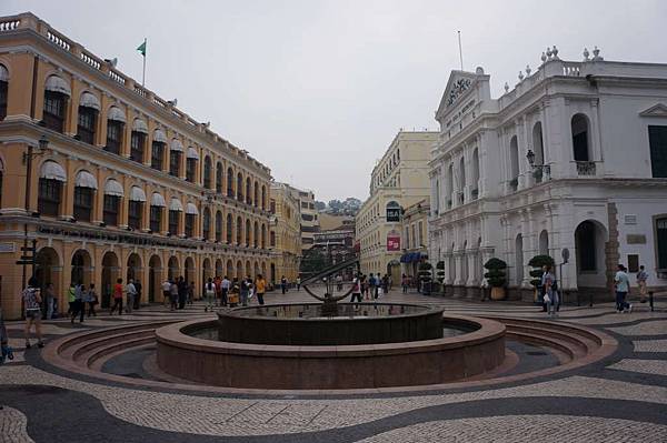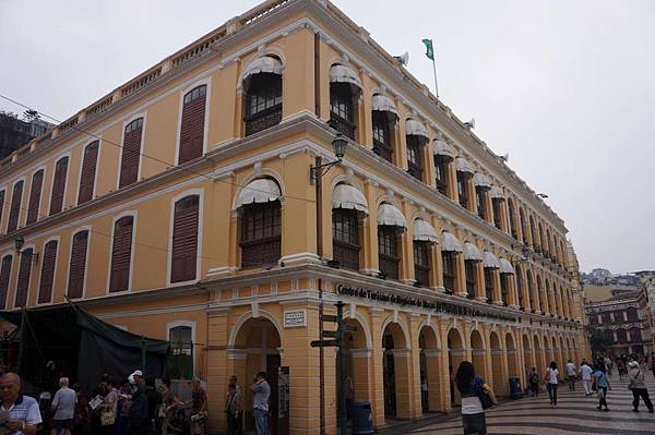 議事亭前地的左手邊這黃色漂亮的建築物是澳門商務旅遊中心