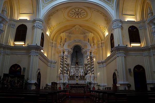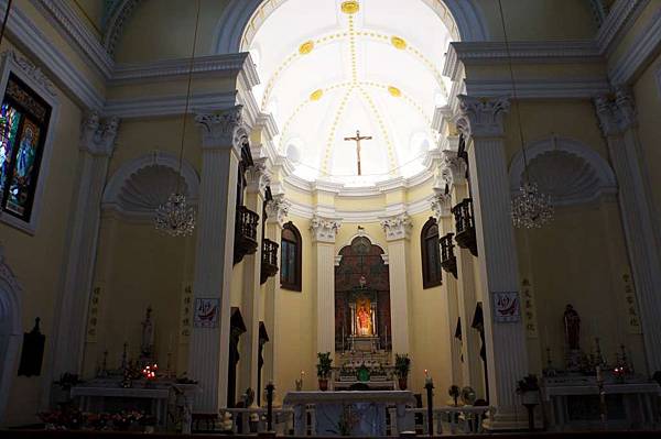 聖堂建築具葡萄牙色彩,正立面左右兩翼各有大鐘樓。堂內正中主祭台上有該堂主保聖人聖老楞佐聖像。左右兩側各有一小聖堂,上空鳥瞰成十字型。