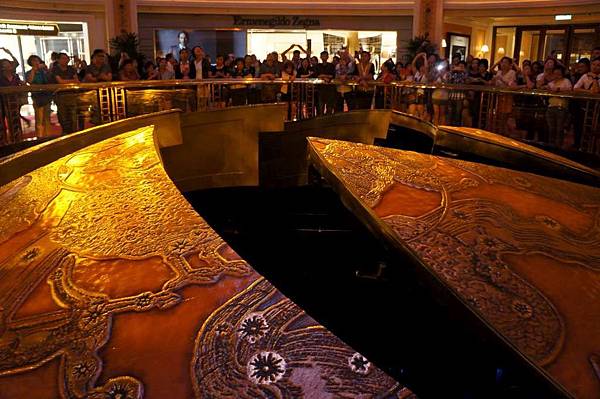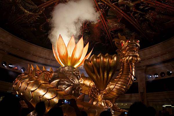 一條威猛的金色巨龍騰雲駕霧般從中庭的地底緩緩躍升至28尺的高度
