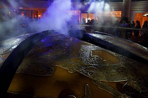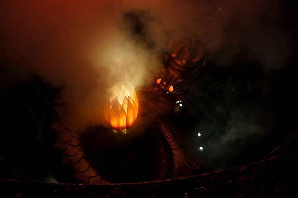 雷射燈光與銀河穹頂構成一幅美麗的燈光秀,使黑夜的天空更加璨爛炫耀奪目,整座城堡金光閃閃