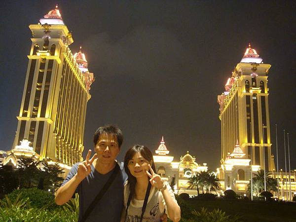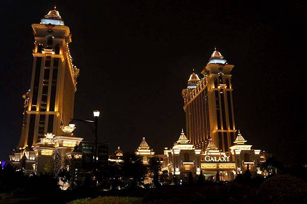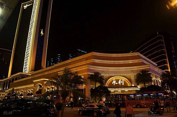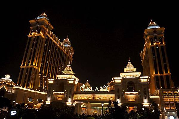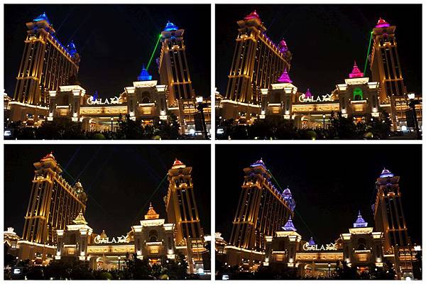 吃飽後我們馬上又衝出門去拍銀河酒店夜晚打燈的樣子