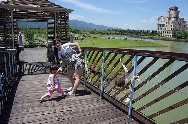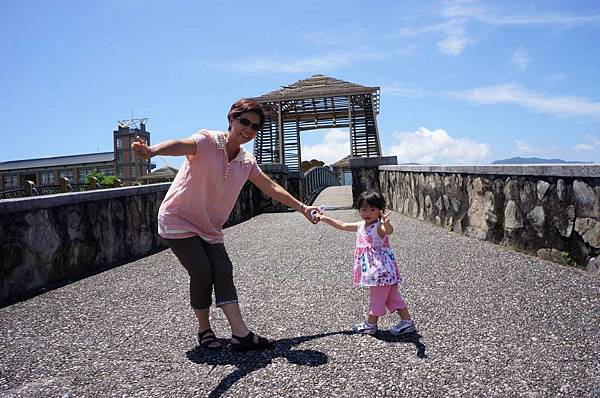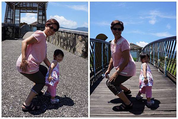 在橋上和阿媽擺起POSE起來