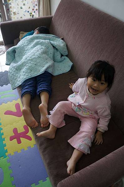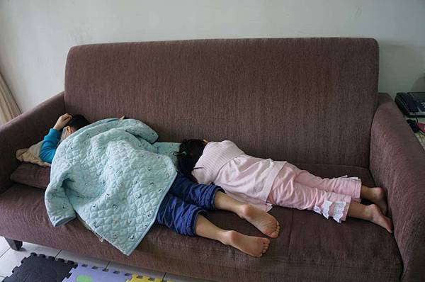 比比倒在沙發上睡覺
