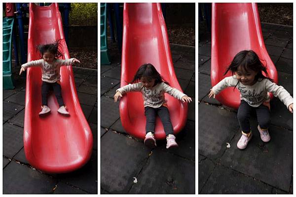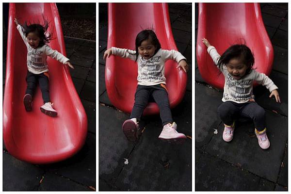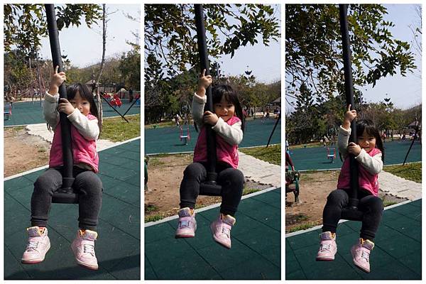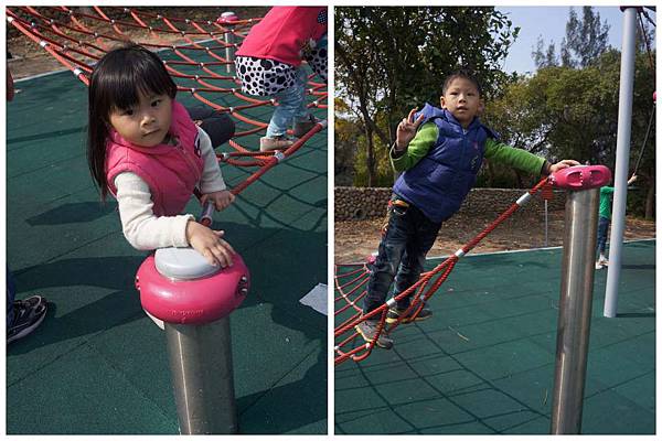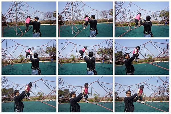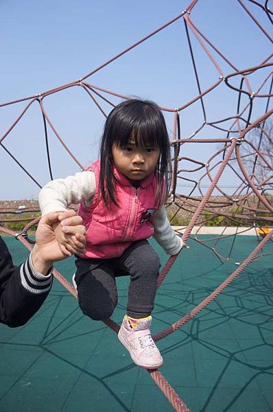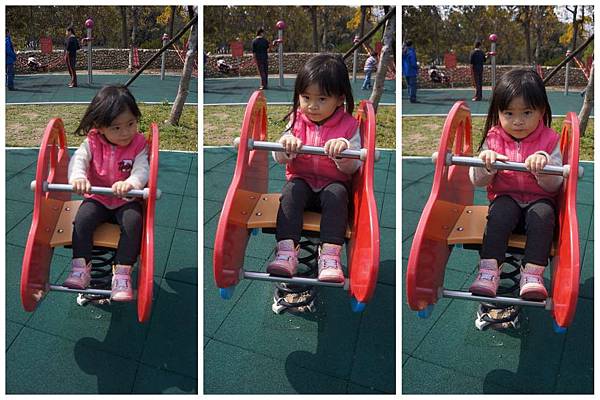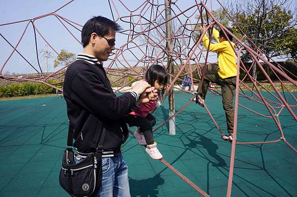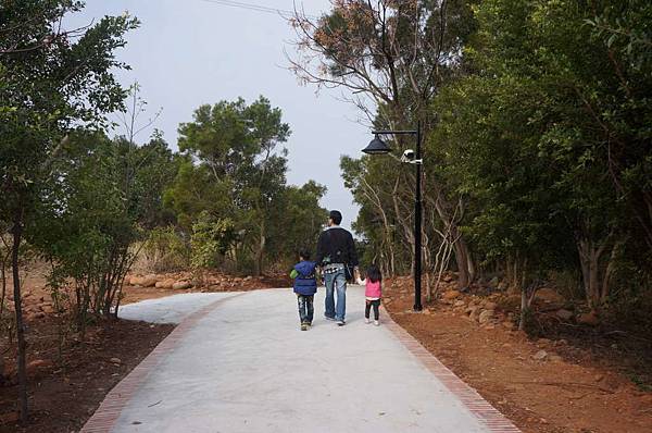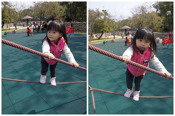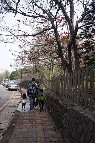 比爸只好在後頭扶著她走..要不然空隙太寬了...咪咕腿太短了..哈