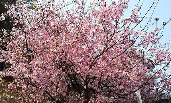馬上看到一株開的很茂盛的櫻花