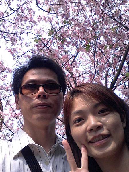 我和比爸在櫻花樹下自拍