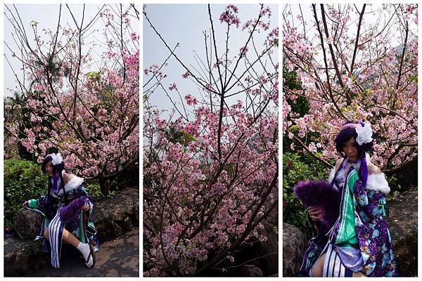 還有看到COSPLAY的裝扮在櫻花樹下拍照
