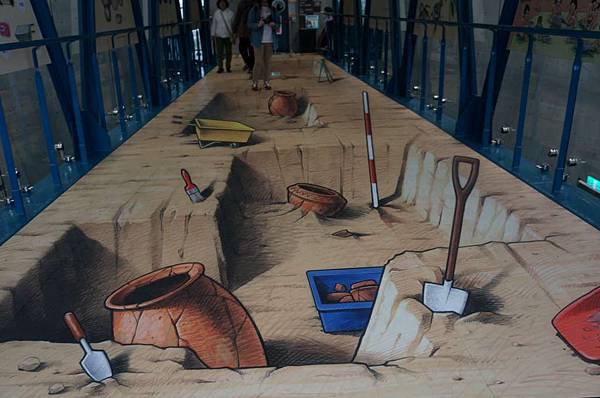沒想到這長廊的地上是3D的圖案-採礦的圖案