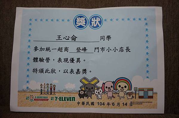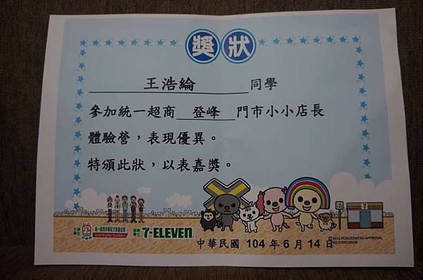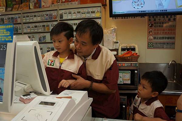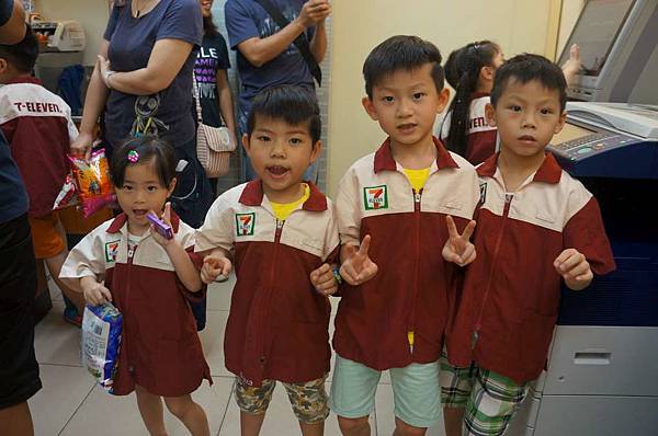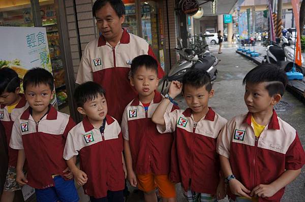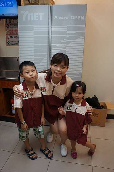 咪咕體驗完..媽咪穿上7-11製服一起和他們拍一張