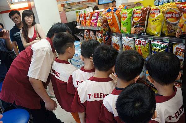 開始分成二隊由服務人員帶隊介紹7-11的各種產品