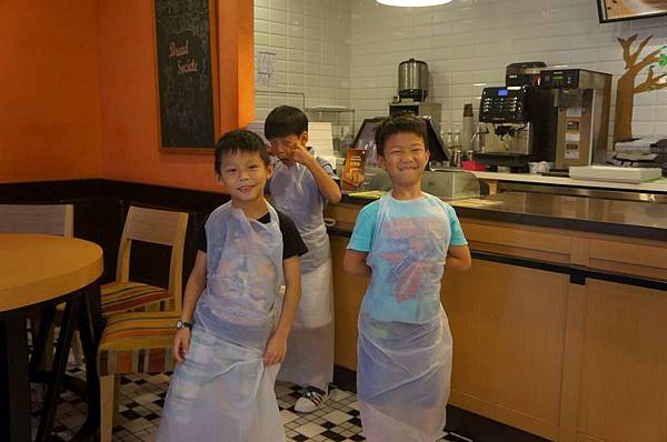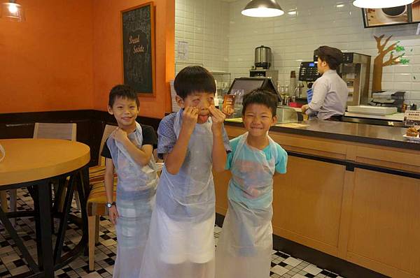 三位小王子穿上小圍裙準備要來做蛋糕嘍!