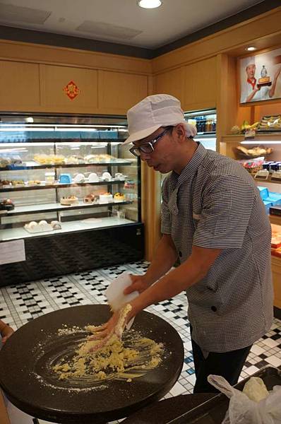 師傅拿出做麵包的材料