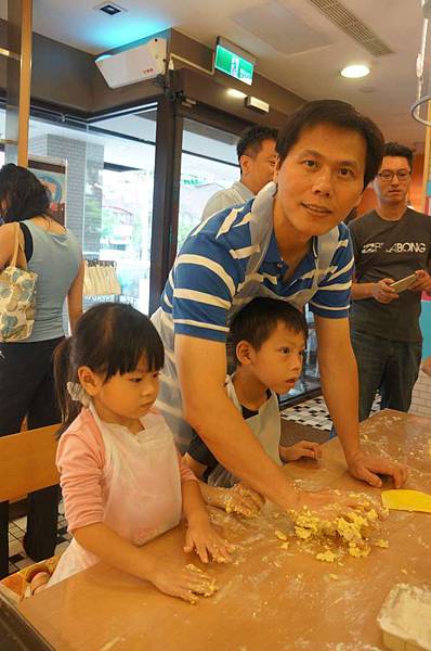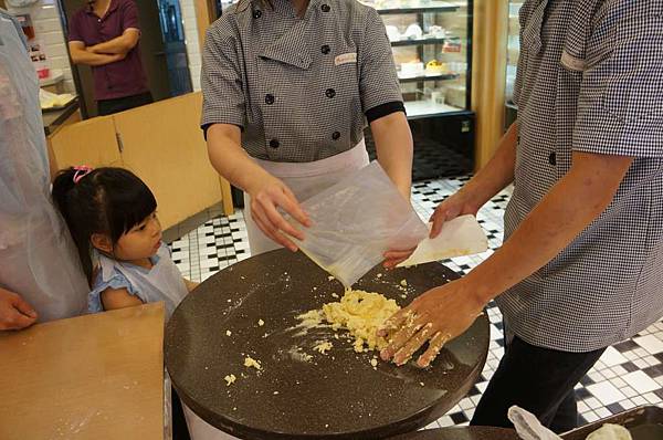 今天組數不多...師傅多給我們每一組一個麵團來玩