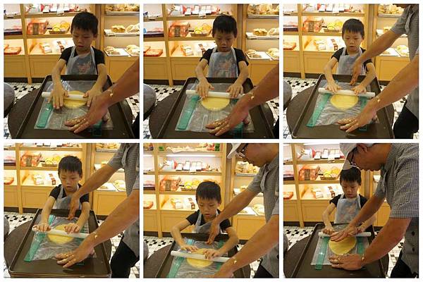 師傅拿出剛才桿好的讓小朋友先試著壓模