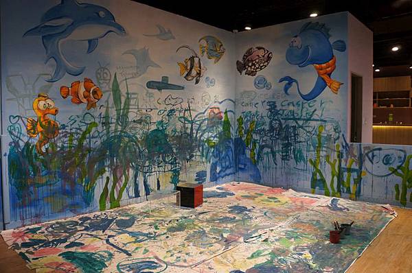 地上牆壁都可以畫...真的是讓小朋友隨意畫