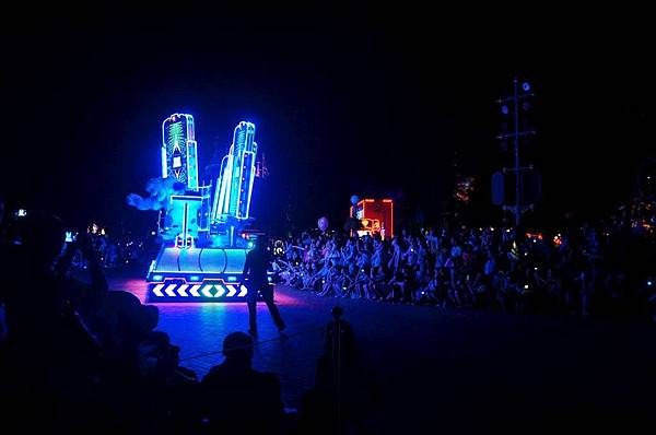 車隊前的隊員身上的燈光一直隨著音樂變化不同的顏色